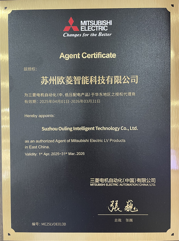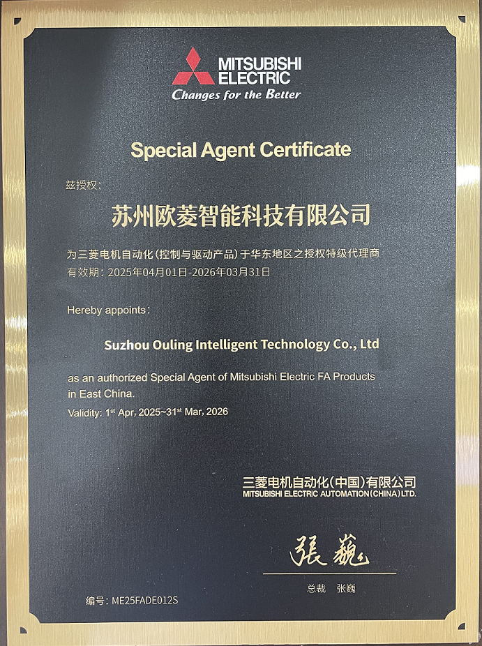 江苏欧菱成立于2000年,是一家以工业自动化产品及软件、融合产线和数字化工厂系统解决方案提供商和服务商,目前旗下两家企业:苏州欧菱智能科技有限公司为三菱电机授权特级战略代理商;江苏欧菱自动化系统有限公司是三菱电机授权的SI系统集成商;同时欧菱也是三菱电机FA产品技术A级培训中心和A级授权售后服务站。